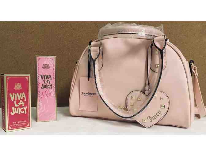 Lovely blush Juicy Couture handbag with Viva La Juicy and Viva La Juicy La Fleur parfume set.