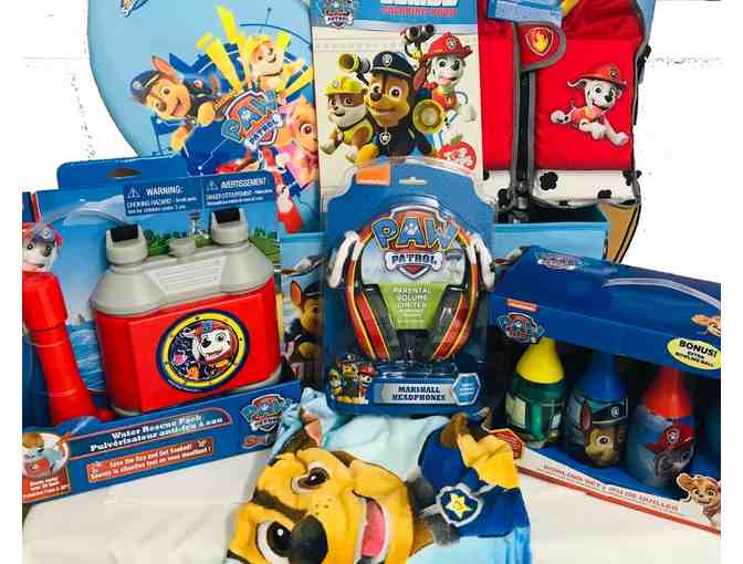 They'll have a ball with this Paw Patrol Pack. Pack includes 2 bins, Water Backpack, Headphones, Beach Towel, Boogie Board, Coloring book, Life vest and bowling set.