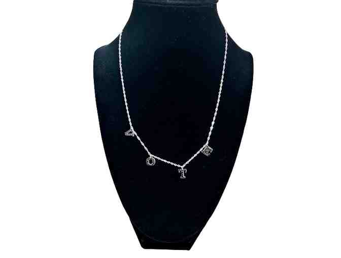 Show them what democracy looks like, sporting this fabulous sterling silver VOTE necklace wrapped in sparkling black spinel.