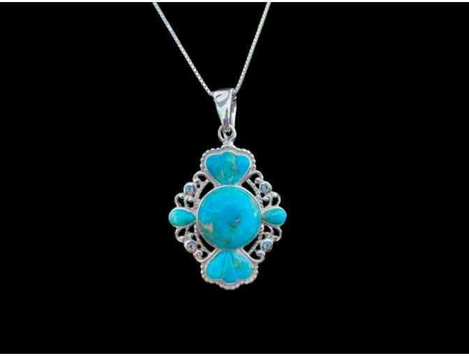 Go all out in this 16mm Turquoise and Topaz accent Pendant, in sterling silver.