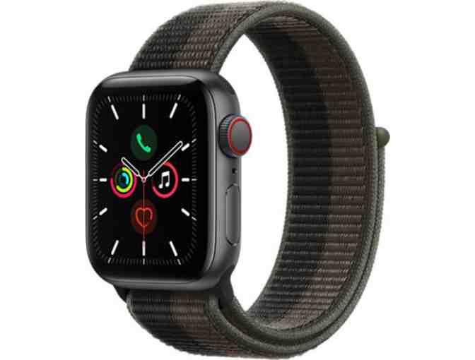 Space Gray Aluminum, 44mm screen with a Midnight Sport (black) band. Photo of actual watch. Powerful features to help keep you connected, active, healthy, and safe. Advanced sensors to track all the ways you move and to measure your favorite workouts. And available cellular so you can go without your phone. Apple Watch SE is a lot of watch for a lot less than you expected. Check out all the features here.