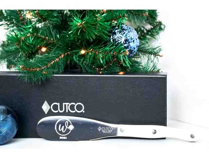 An all-in-one tool that mixes, spreads, slices and serves. 5" blade with branded engraving and pearl handle.