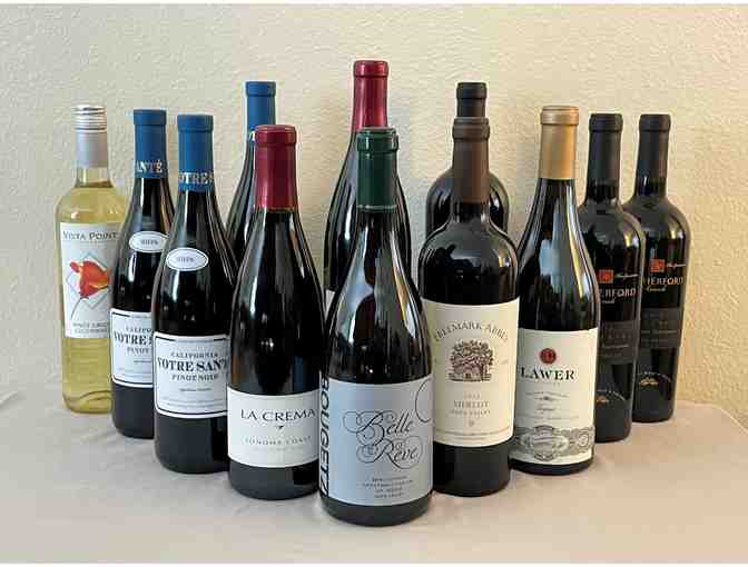 This case includes: THREE 750ml of 2018 Francis Ford Coppola Votre Sante Pinot Noir, THREE 750ml 2017 Rutherford Ranch Cabernet Sauvignon, TWO 2012 La Creme Pinot Noir, and ONE 750ml of each 2013 Freemark Abbey Pinot Noir, 2018 Bougetz Cellars Voignier, 2018 Lawer Estates Viognier, and Vista Point Vineyards Pinot Grigio. Whew!