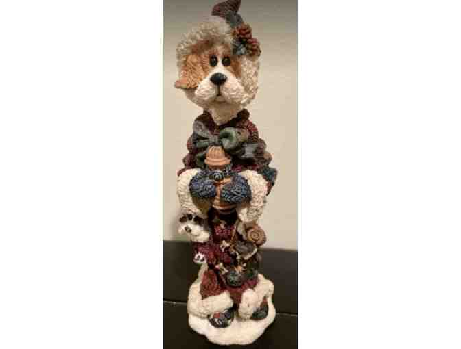 This is an adorable Boyd's Bear Santa Dog. Santa is holding a pups favorite gift in his blue mittens - a hydrant wrapped with a beautiful green bow. Perfect decoration for your mantle or under the tree for any dog lover in your life.