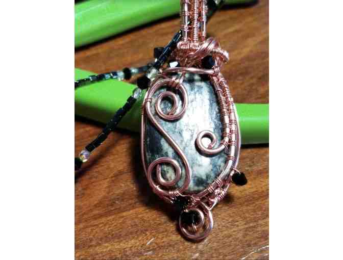 Unique and gorgeous necklace handmade by Leslie Kasmer of Water Sprite Stones. These stones come from the Columbia Gorge and are polished to perfection, then crafted into a beautiful piece of wearable art.