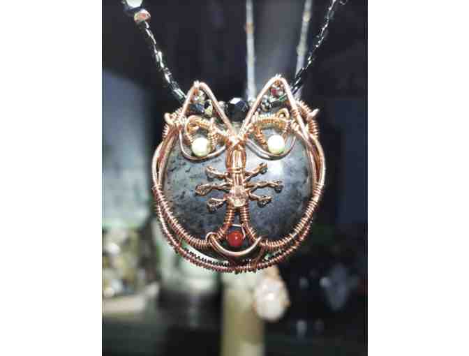 Unique and gorgeous necklace handmade by Leslie Kasmer of Water Sprite Stones. These stones come from the Columbia Gorge and are polished to perfection, then crafted into a beautiful piece of wearable art. In this case, there's no doubt it's a purrrfect match for you!