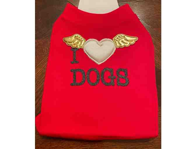 Do you love dogs?  Your furbaby loves dogs too.  Let your furbaby show off this love with the "I heart Dogs" with a puffy heart and wings applique.