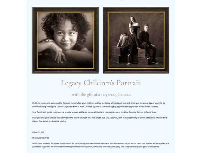 Children grow up so very quickly. Forever immortalize your children as they are today with artwork that will bring you joy every day of your life by commissioning an original Classic Legacy Portrait of Your Children by one of the most highly regarded family portrait artists in the country. Your family will get to experience a private session at Mark's personal studio in Los Angeles or at his Wine Country Retreat in Santa Ynez. Both you and your spouse will later return to select your gift of a full length 12.5 x 12.5 canvas, with the opportunity to order additional artwork from Halper Fine Art at preferential pricing.