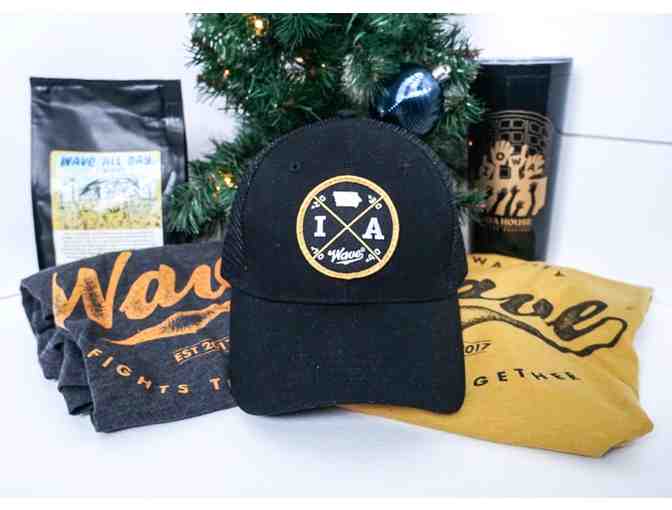 Donated by our partners and recipients of funds raised, The University of Iowa. The basket includes: 2 size large t-shirts, 1 baseball hat, 1 travel coffee mug, 1 bag of specialty ground coffee.