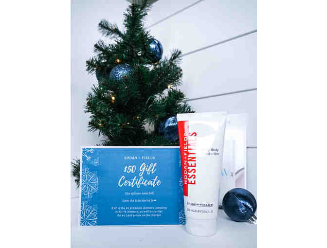 A $50 Gift Certificate, full sized Essentials Daily Body Moisturizer and collection of samples.