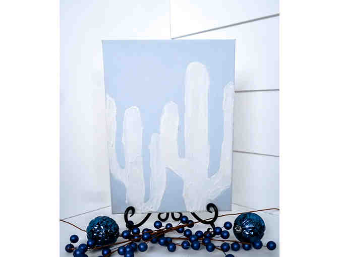 Light Blue textured cactus, hand-painted with molding paste by local artist Chelsea Bernardo. 9inx12in.