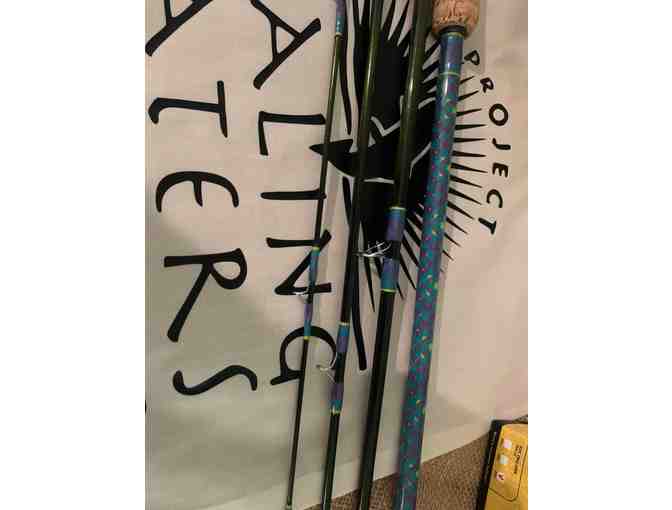 This rod was custom by Participant Dan (Vietnam Veteran). Dan created this one of a kind rod with a preteen he has named the Puzzle. Dan finds that the intricate pattern allows for hours of concentration that he finds to be very therapeutic.
