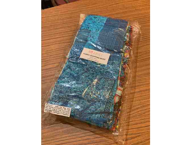 By Natural Fashions Inc., these varied colorful print bags can be used as totes or as gift bags.