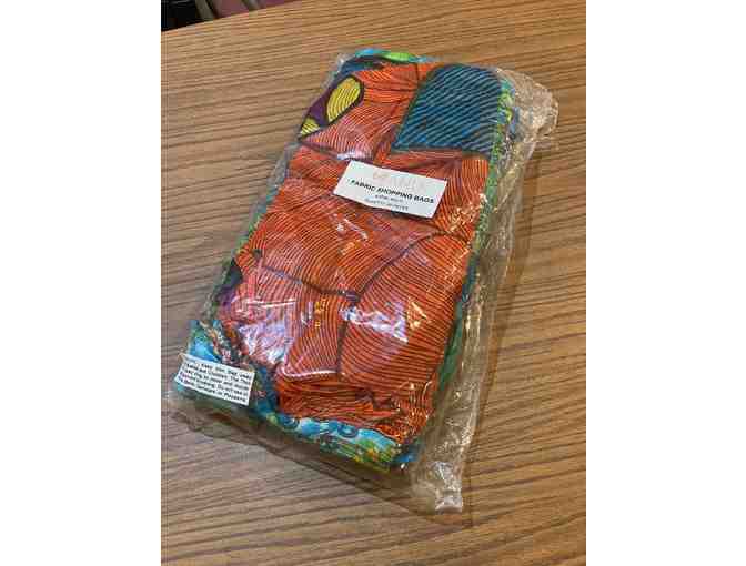 By Natural Fashions Inc., these varied colorful print bags can be used as totes or as gift bags.
