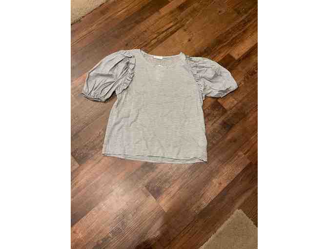 Size Small striped and ruffle sleeve blouse donated by Racha's Boutique