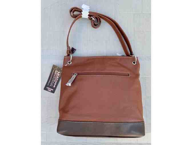Stone Mountain USA Pebble Peyton Supersize Crossbody purse in Cognac/Brown