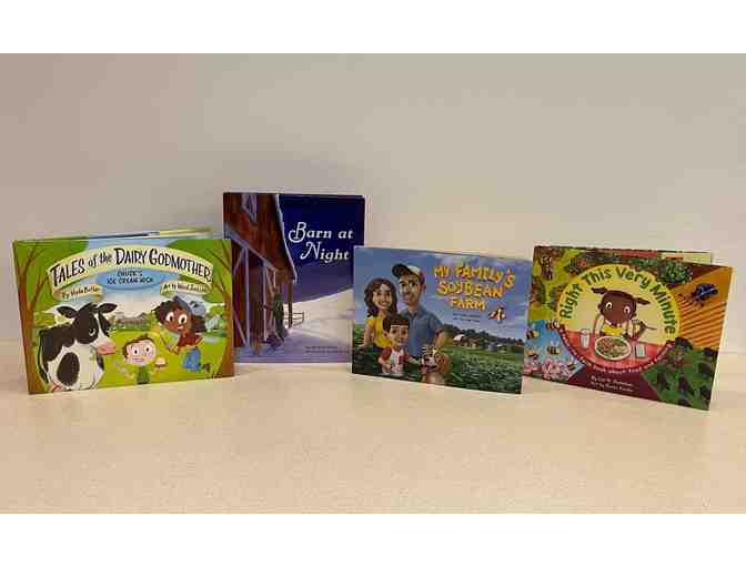 Hard back copies of: Tales of the Dairy Godmother - Chuck's Ice Cream Wish, Barn at Night, and Right this Very Minute. As well as a paperback version of My Family's Soybean Farm.