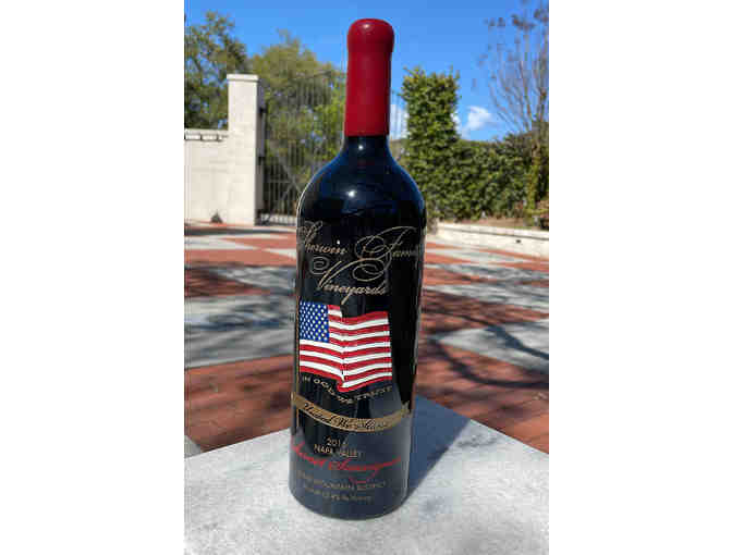 The Sherwin's decided to make their magnum truly special with a striking hand-etched, hand-painted design featuring the American flag and the meaningful words “In God, We Trust” and “United We Stand.” The back of the bottle also stated that it was proudly created “in remembrance of those lost September 11, 2001.”