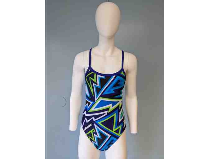 Perfect suit for swim team practice. Female size 30 (Aqua, purple, green and white).