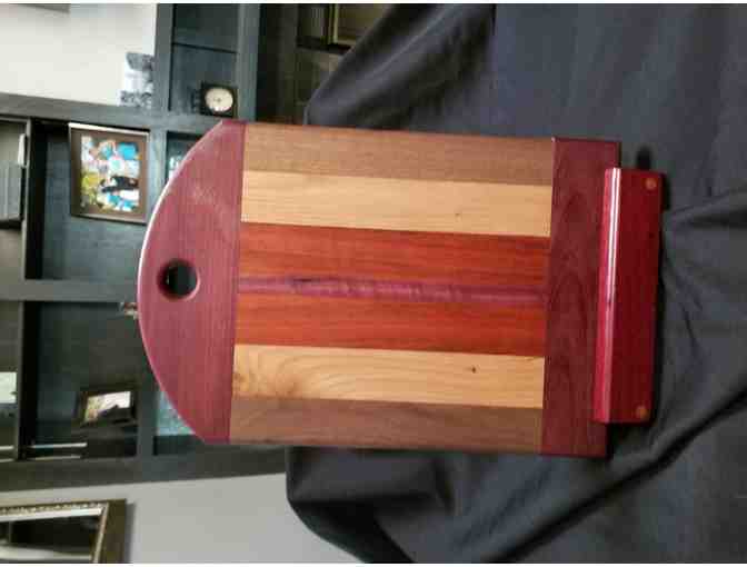 Large handmade wood cutting board with stand. Beautifully handcrafted!