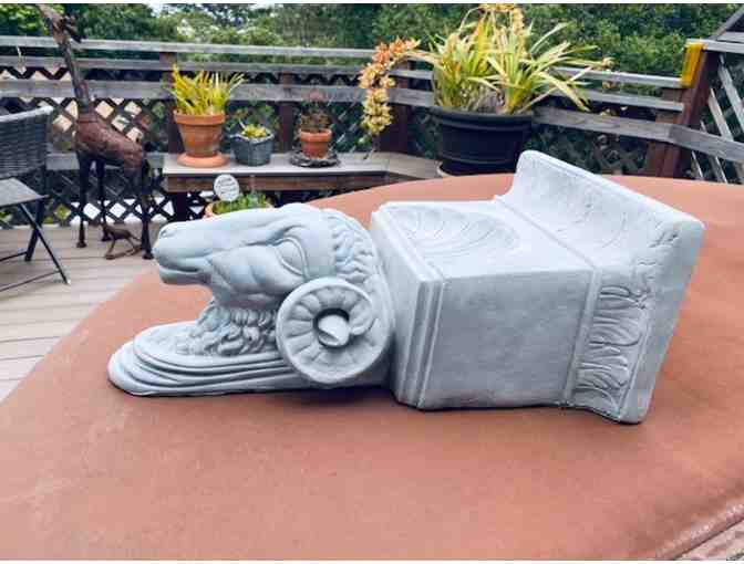 Concrete Ram's Head Garden Decoration 19.5" long and 8" tall on highest end.