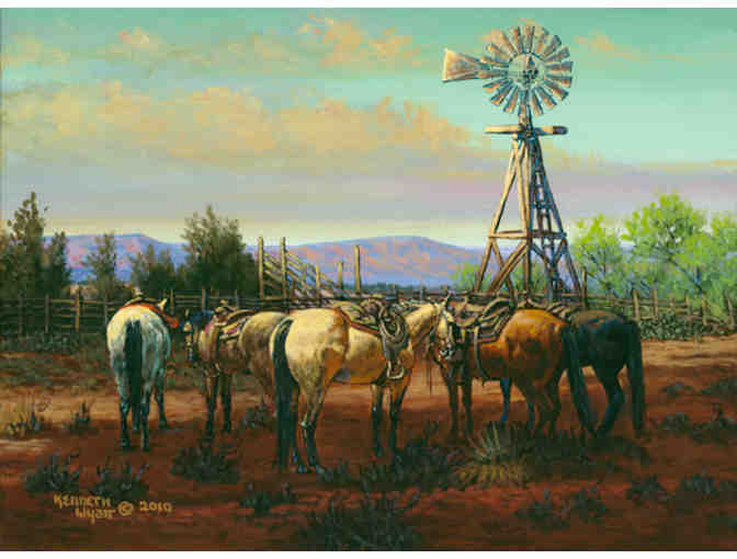 Kenneth Wyatt painting- 'About Quittin' Time' This is a 16x20 Framed Giclee paining on canvas.