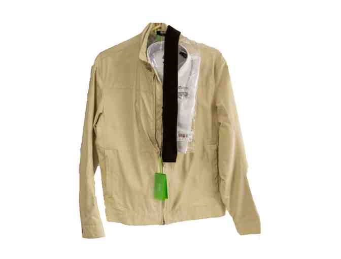 A Hugo Boss Jabin jacket (sm, beige), with Hugo Boss ONSIE tie (brown), and Hugo Boss white dress shirt (regular fit).