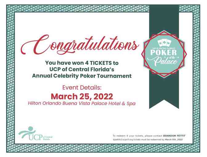 Join us for our Celebrity Poker Tournament where you can play poker for a purpose with local celebrities! The success of the tournament directly impacts UCP’s education and therapy programs that will help more than 3,500 children and families that UCP serves.