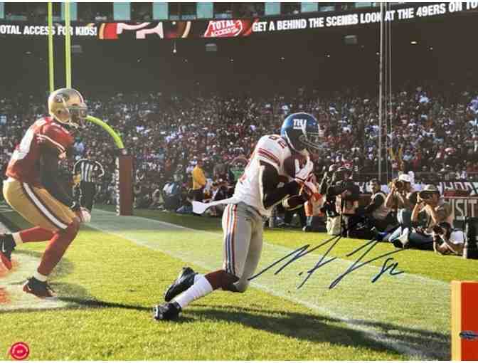 NY Giants Super Bowl 46 WR Mario Manningham Autographed Framed 16 x 20 Photo. signed by Manningham this beautful photo captures how clutch #82 was for the Giants throughout the playoffs during their Super Bowl run (this photo vs 49ers in regular seasongame), making spectacular grabs to help the GMen secure their 4th SB win in the team's history to finish off the 2011 season.