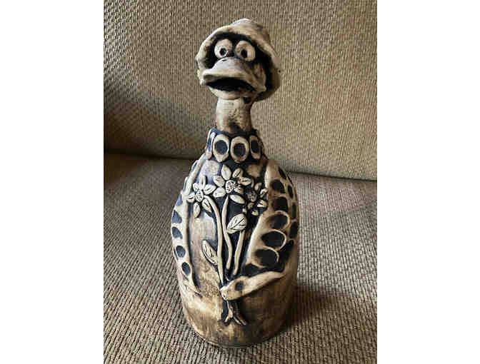 Whimsical handmade ceramic decoration for home or garden. Daffodil Duck stands 10.5in tall with a 4.25in circular base. She weighs in at 2.6lbs. Like new, lived indoors. Shipping and handling fees will be added to the final winning bid amount after the auction has closed. Item will be shipped via USPS and billed at standard industry rates. If you would like to avoid shipping costs, the item can be picked up near Columbus, Ohio.