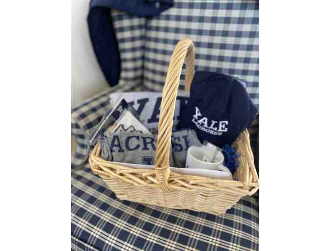 Generously donated by Campus Customs in New Haven, basket includes a medium lacrosse t-shirt, medium sweatshirt, baseball cap, mug and stickers!