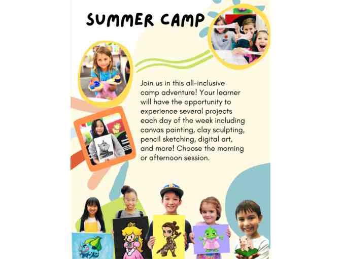 The winner of this item will receive one week (5 days) of in-person summer camp at Young Art, Valley Fair. This can be used for a consecutive week, or 5 days of the recipient’s choosing. Choose the morning or afternoon session.