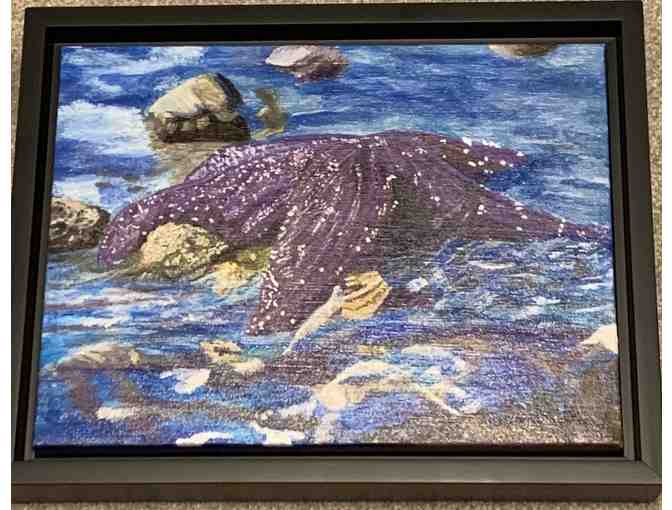 This original painting by well known local artist Karen Webb, in acrylic on canvas 9" x 12" and mounted in a black frame is ready to hang. The painting is based on the purple sea star (or starfish) native to the Salish Sea. In recent years, the starfish had almost disappeared from our shores, being affected by a wasting virus. Fortunately they are making a comeback and are now seen again in large numbers.