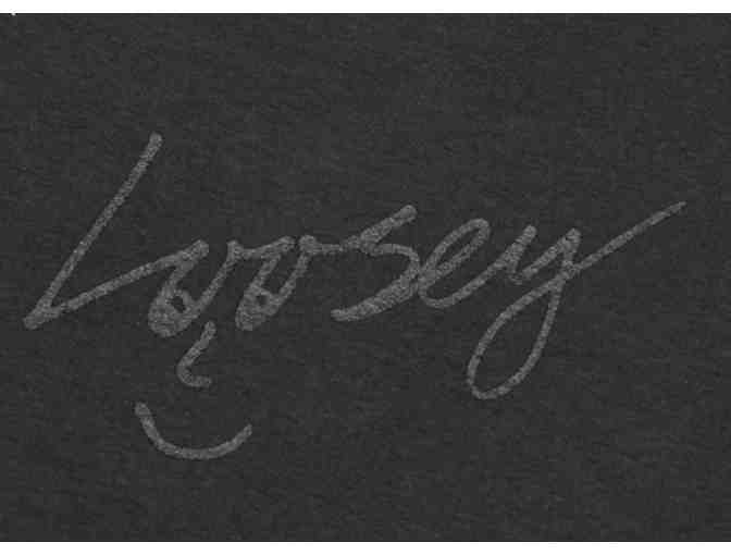 Elevated black T with black glossy screen printed logo. Made in Los Angeles, 100% cotton. Artwork by Tordan Jaylor. Not your average black shirt.