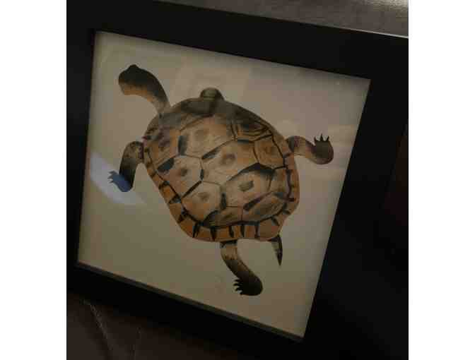 You are bidding on a 6" x 6" framed piece of art of a turtle. He's a french turtle!