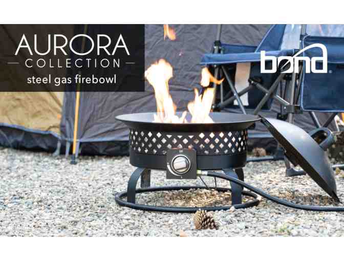Bond Manufacturing 67836 54,000 BTU Aurora Camping, Backyard, Tailgating, Hunting and Patio. Locking Lid & Carry Handle Portable Steel Propane Gas Fire Pit Outdoor Firebowl, 18.5", Bronze
