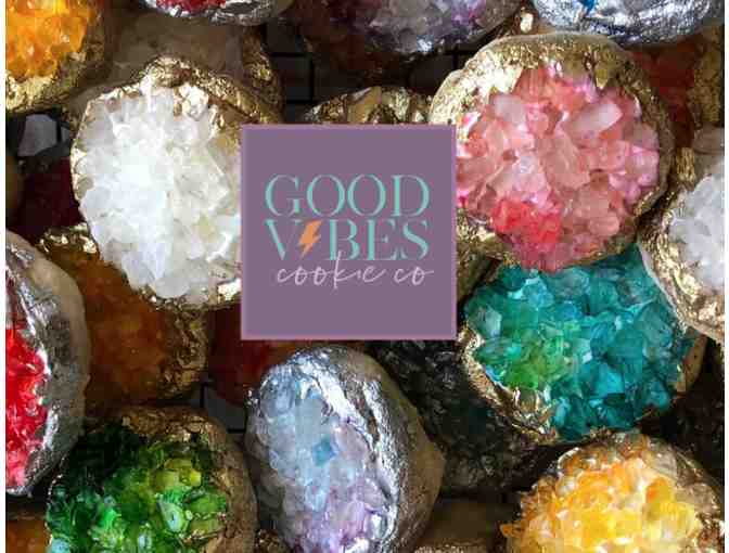 Good Vibes Cookie Co. exists because we believe in karma, we believe we are all interconnected, and we believe a good cookie baked with sweet intentions has the power to make someone's day. Created by the pull of passion and a burst of creativity, our homemade crystal cookies come from the heART.