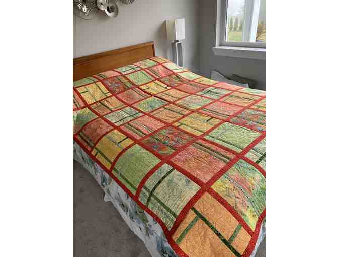 This beautiful quilt was made by quilt artist, Sue Forshaw of the Lions Bay Quilters Guild. The custom made quilt is of the highest quality cotton in shades of Spring and will fit a queen size bed approx size 78" x 58" Value: $500