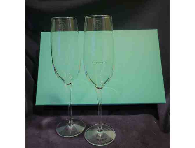 Two champagne crystal flutes from Tiffany and Co.