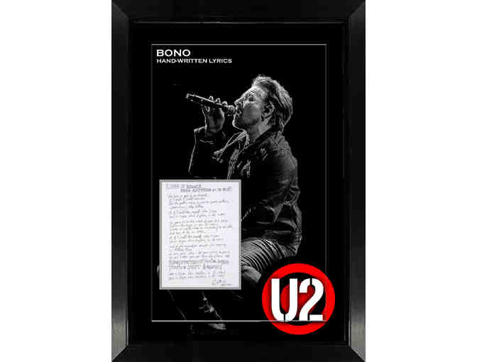 U2 Lead Singer Bono Autographed handwritten Lyrics Framed with Photo.