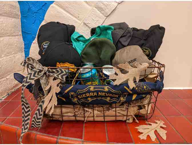 This Sierra Swag Bag is all you need to let everyone know you're a Sierra Nevada Fan! Items include: (2) Sierra hats, A Beanie, Bandana, Sweatshirts, Collared Shirt, T-Shirt, Warriors Sunglasses, Bottle Openers and three (3) 19.2oz cans of Pale Ale, Hazy Big Little Thing, and Atomic Torpedo! Cheers!