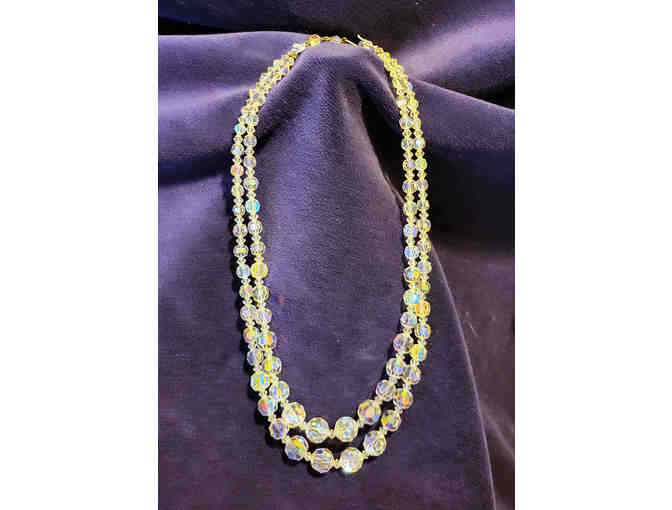 Vintage crystal necklace with double-strand cut crystals. 22"