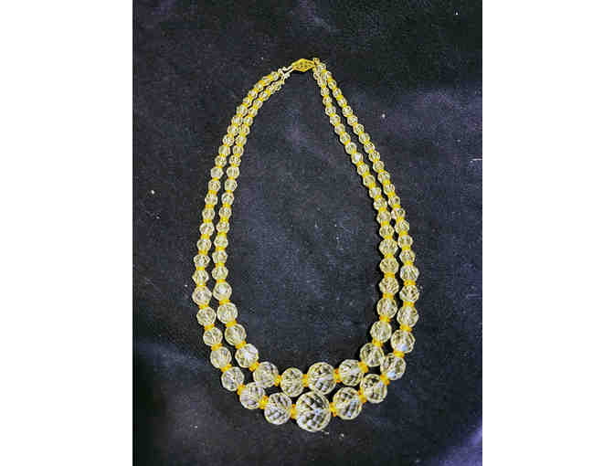 18" Vintage double strand crystal necklace with yellow crystal accents.