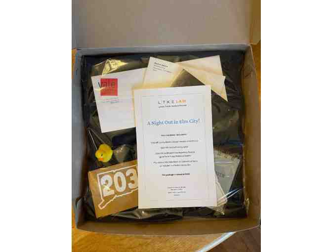 Includes $100 gift card to Modern Apizza and Modern Tshirt (L), $100 gift card to Elm City Social, $260 gift certificate to the Yale Rep (4x Friday/Weekend tickets) and much more!