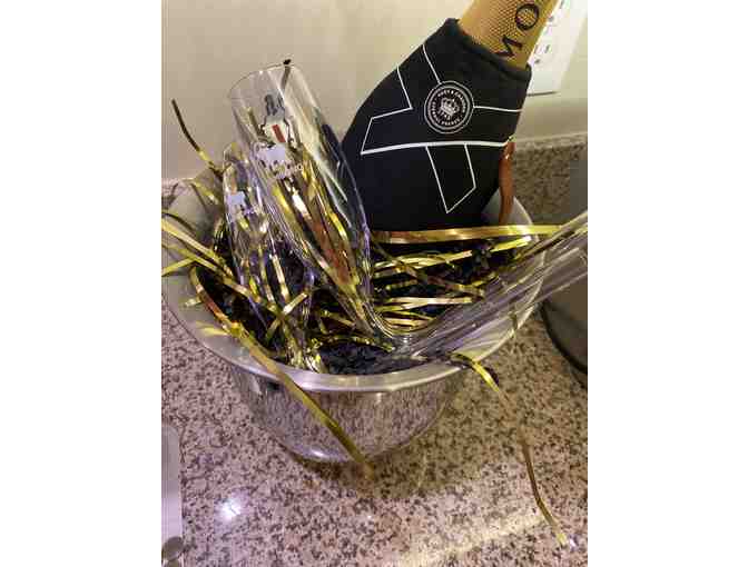 Date Night Basket includes Moet & Chandon Champagne, a champagne bucket, 2 chambong glasses, $50 Postino gift card, 2 Arizona Ballet tickets, 2 Phoenix Art Museum tickets.
