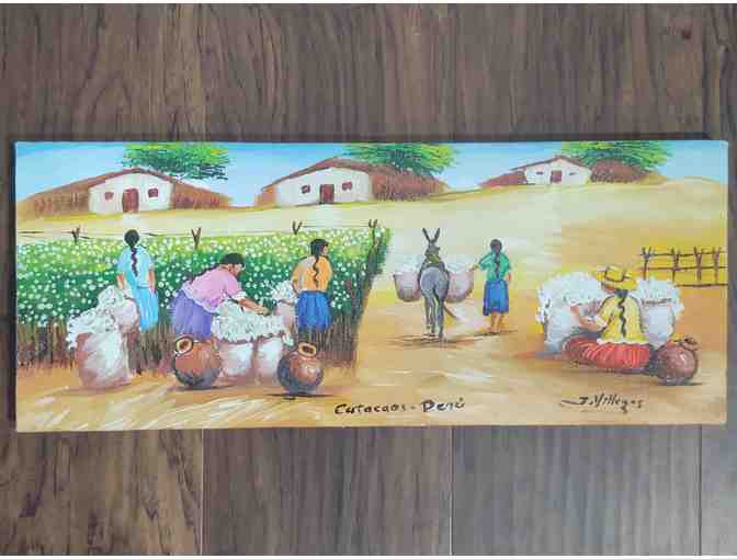 Stretched Canvas Painting of a Scene of Peruvians Farming Cotton