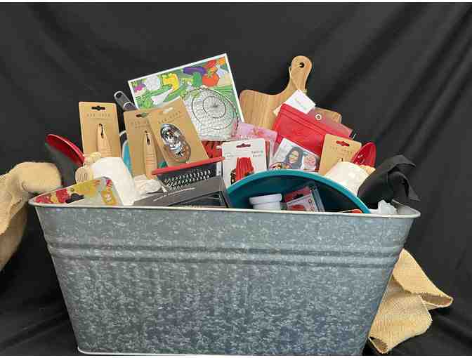 This package has all the essentials to cook up a scrumptious meal. Includes a variety of cooking items such as: a splatter screen, steel grater, 8-piece non-stick knife set, salt & pepper shakers, cast iron skillet, spoon rest, peeler, measuring set, thermometer, mixing bowls, and much more!