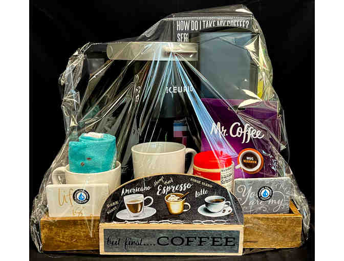 It's always time for coffee! We've included your own personal Keurig brewer, mugs, and a variety of coffee to enjoy. Keep your coffee organized with a storage drawer and your coffee warm with the mug warmer. Also included are assorted accessories to brighten your day.