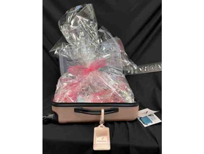 20' inch rolling carry-on suitcase, travel pillow, luggage tags, suit/garment bag, travel containers, etc.