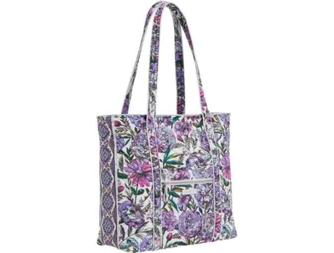 Vera Bradley iconic Vera Tote in Lavender Meadow pattern.